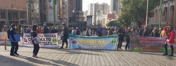 La Federación Regional de Cooperativas Mineras Auríferas del Norte de La Paz (Fecoman LP) y la Federación Regional de Cooperativas Mineras Auríferas (Ferreco) convocaron a sus 1.350 cooperativas afiliadas para realizar movilizaciones desde la pasada jornada en busca de atención a sus demandas que tienen que ver con la aprobación del régimen tributario del oro para pagar menos impuestos de los que se prevé; la obtención de la personería jurídica de la Fecmabol; seguridad jurídica contra los avasallamientos; hechos irregulares en la Autoridad Jurisdiccional Administrativa Minera (AJAM) y Senarecom; suscripción de contratos administrativos mineros por adecuación de derechos preconstituidos con la AJAM; tratamientos ambientales en las cooperativas mineras auríferas (Sernap y ABT); aprobación de la Ley del ente gestor.
