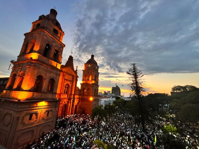 Asimismo, Rómulo Calvo, leyó un breve mensaje del gobernador Luis Fernando Camacho, el mismo que fue entregado por medio de sus familiares. “Agradece a Bolivia por la medida, pero que él no es el único preso político en Bolivia, tenemos 183 presos políticos, esta lucha tiene que ser por la democracia y el respeto de todos”, leyó Calvo frente a la multitud.