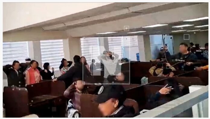 Al ingresar a las oficinas, los funcionarios levantaron las manos y las colocaron detrás de la nuca por orden de los agentes para evitar que borren información de sus computadoras.