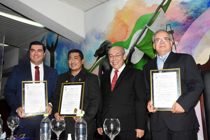 El secretariomunicipal de Desarrollo Económico, Richard Gonzales Peredo, y el presidente del Concejo, Israel Alcócer, también recibieron plaquetas de reconocimiento de la directiva del Colegio de Abogados de Santa Cruz, presidido por Julio Egüez.