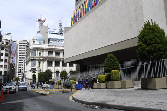 En el edificio del BCB en la ciudad de La Paz, ubicado en la calle Ayacucho y Mercado, un total de 15 cajeros atienden a la población que demanda la divisa, en horario extendido desde las 07.00 hasta las 21.00 de lunes a viernes.