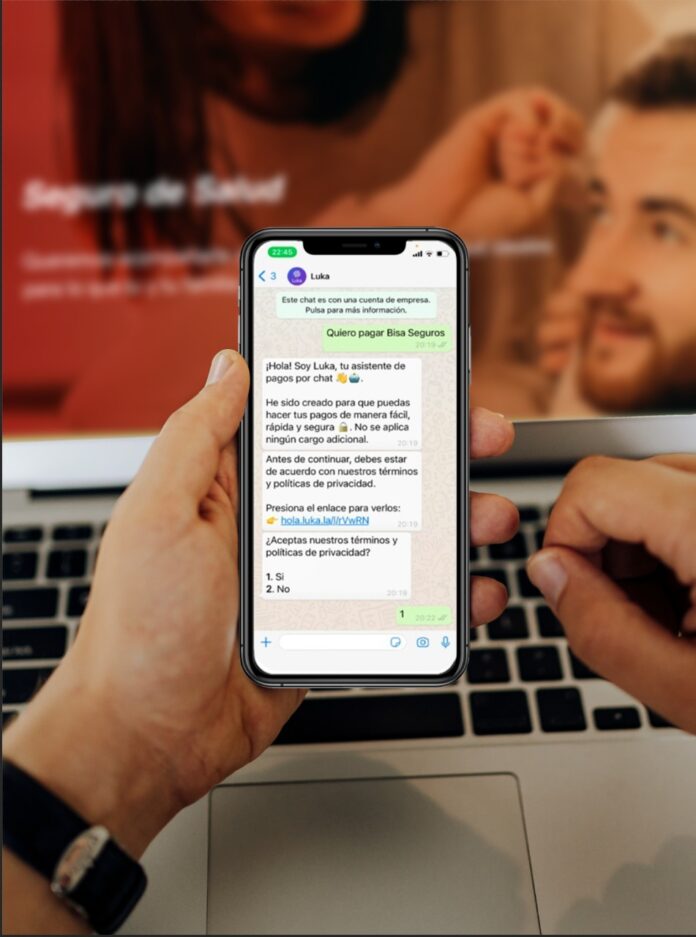 Son 7 los pasos para pagar las pólizas de seguros por esta herramienta innovadora. La factura y comprobante de pago se emiten de manera digital directamente a la ventana de conversación, una vez finalizado el pago.