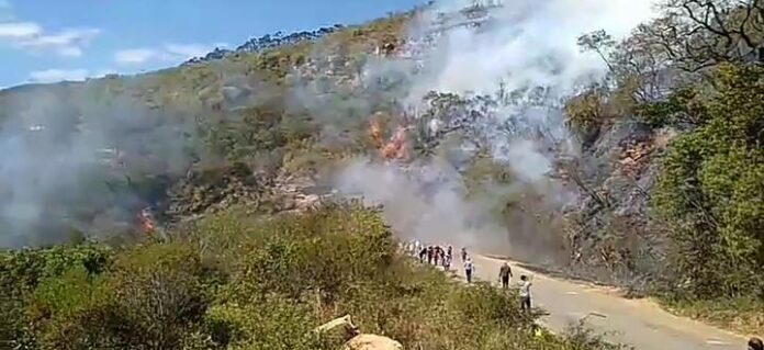 Grupo de personas que bloqueaban a la altura de El Fuerte quemaban llantas y ramas para no permitir el paso de vehículos, pero debido a los vientos el fuego se esparció y ahora no pueden controlarlo, vecinos de la zona están preocupados por la situación.