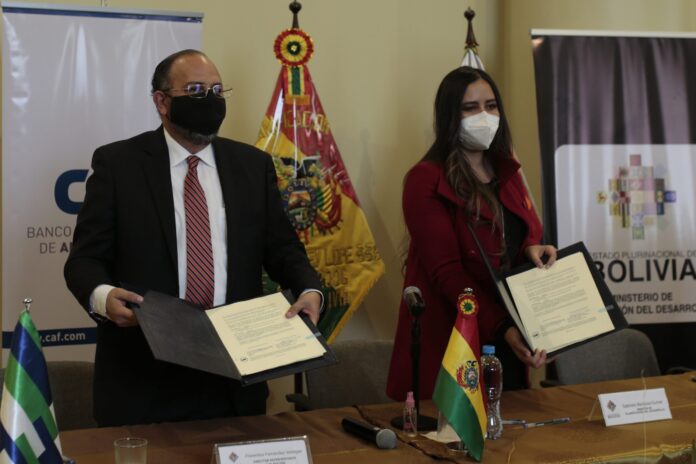 Ambos contratos fueron firmados en la ciudad de La Paz por el Representante de CAF en Bolivia, Florentino Fernández, y la ministra de Planificación del Desarrollo, Gabriela Mendoza.