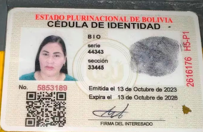 Según el Segip, la cédula boliviana que tenía la narcotraficante, bajo el nombre de Norma Claros Torrico, fue emitida por la antigua administración de Identificación Personal.