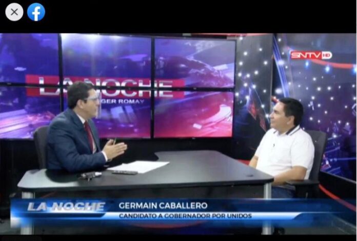 Germaín Caballero, candidatos a gobernador por Unidos, fue invitado al programa de Tv La noche con Róger Romay, en el que se ufanó de tener el mejor plan para Santa Cruz y en gran parte del diálogo habló y atacó a sus adversarios Luis Fernando Camacho (CREEMOS) y Mario Cronenbold (MAS).