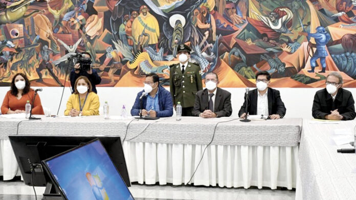 Esta misma jornada el presidente del Estado, Luis Arce junto a sus principales colaboradores se reunió con los nueve gobernadores para trabajar en un plan integral para combatir el COVID y sus efectos.