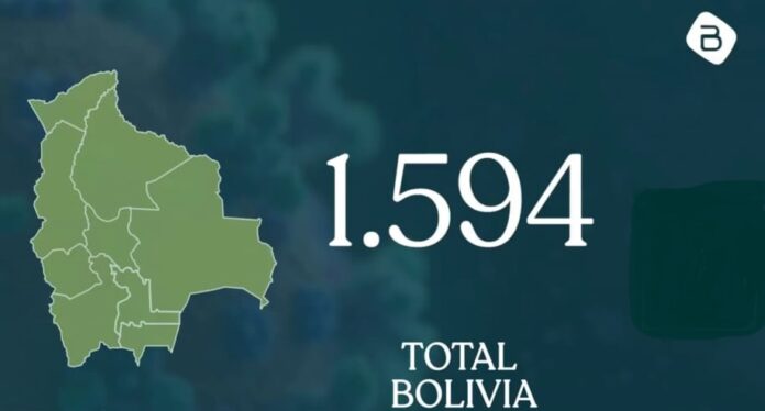 El Ministerio de Salud reportó el domingo 124 casos nuevos de coronavirus COVID-19 en el país, con los cuales suben a 1.594 los pacientes confirmados en Bolivia. “Hasta las 18h30, se reportaron 124 nuevos pacientes infectados, teniendo un acumulado de 1.594 pacientes con confirmados en Bolivia”.