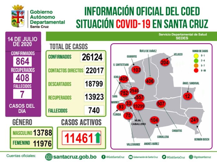 Desde el Centro de Operaciones de Emergencias Departamental, el director del Sedes, Marcelo Ríos, informó que este martes se registró una de las cifras más altas de lo que va de pandemia de Covid-19, con 864 nuevos contagios confirmados por laboratorio, sumando a la fecha un total de 26.124 casos.