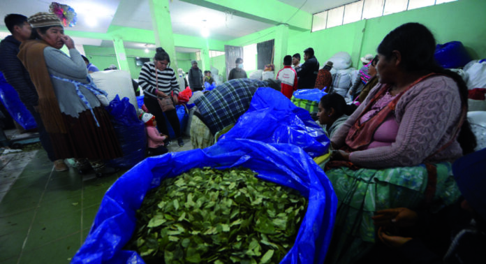 “La coca peruana que entra de contrabando al país es lo que nos está arruinando. Nadie controla y por eso se vende más barato, el taque cuesta 500 bolivianos, la mitad de lo que nosotros vendemos y eso parece que la gente prefiere”, lamenta Juan Cocarico, uno de los líderes de la nueva directiva de la Asociación Departamental de Productores de Coca de La Paz (Adepcoca).