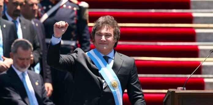 Milei juró este mediodía ante la Asamblea Legislativa reunida en el Congreso, brindó un discurso a la ciudadanía en las escalinatas de ese edificio y luego se trasladó a la Casa de Gobierno, para recibir el saludo de las delegaciones extranjeras y tomar juramento los integrantes de su gabinete.