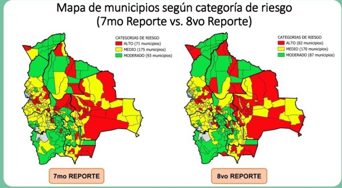 A pocos días de concluir con la cuarentena dinámica en Bolivia, este 30 de junio, el octavo informe del Índice de Riesgo Municipal reportó el viernes que 82 municipios se encuentran en el nivel de riesgo alto de contagio de coronavirus COVID-19.