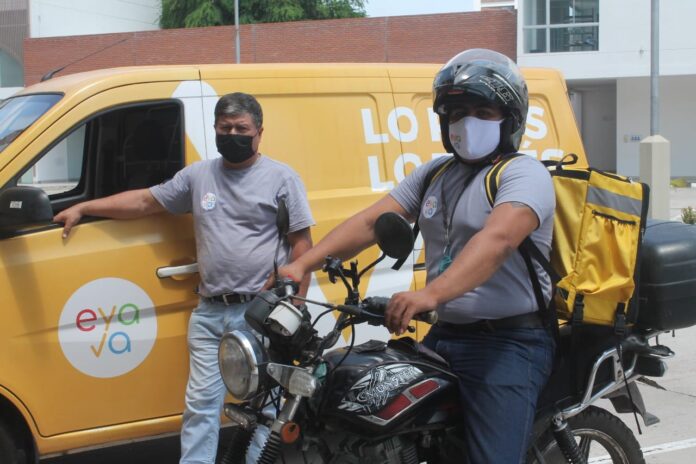 El servicio de entrega rápido se activa en eyava.com haciendo clic en la pestaña de Eyava Express, la que permite acceder a dos categorías de productos: Alimentos y Bebidas.  Y desde el momento de la confirmación del pedido, el equipo de la mejor plataforma eCommerce del país pone en movimiento sus unidades de entrega rápida con el servicio de motos que se caracterizan por la mochila amarilla que lleva el logo de EYAVA y el `eyaVan`.