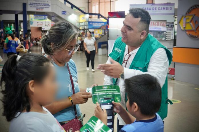 La Gobernación, a través del Servicio Departamental de Políticas Sociales (Sedepos) y por iniciativa de su Programa Trata y Tráfico, desplegó personal técnico hasta la Terminal de buses Bimodal para realizar la campaña preventiva “Unidos contra la Trata y Tráfico”, que tiene como objetivo socializar información sobre el cuidado y protección de niños y adolescentes para evitar que sean víctimas de este delito.