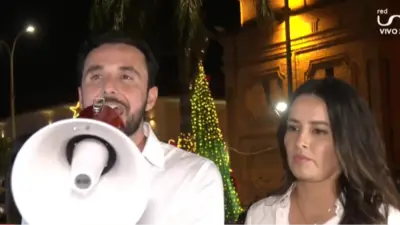 Desde la plaza principal 24 de Septiembre, Juan Pablo Velasco anunció oficialmente este martes su candidatura a la Gobernación de Santa Cruz, acompañado por Paola Aguirre como parte de su fórmula política.