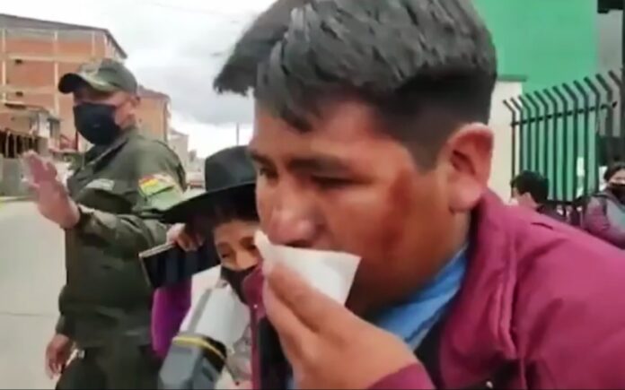 Colque fue golpeado por dirigentes campesinos afines al MAS tras rechazar en conferencia de prensa la resolución del ampliado de campesinos de Potosí que dio un plazo de 48 horas al presidente Luis Arce para que atienda sus demandas. /ANF/