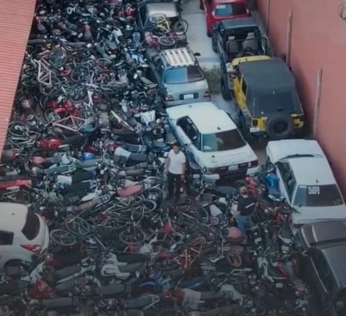Un número incontable de motociclistas apiladas y almacenadas en un depósito ubicado en la calle Charcas en la ciudad de Santa Cruz de la Sierra fueron encontrados este miércoles por la Dirección de Prevención de Robo de Vehículos (Diprove).
