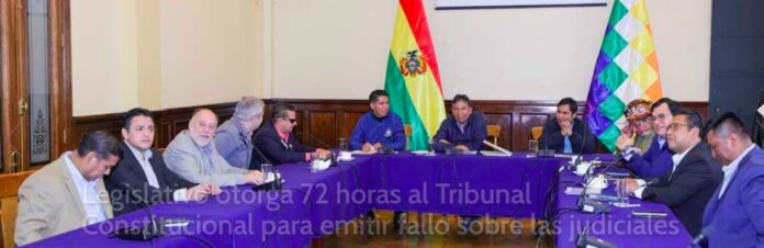 La Asamblea Legislativa Plurinacional (ALP) otorgó 72 horas al Tribunal Constitucional Plurinacional (TCP) para emitir el fallo correspondiente sobre el proyecto de ley para las elecciones judiciales.