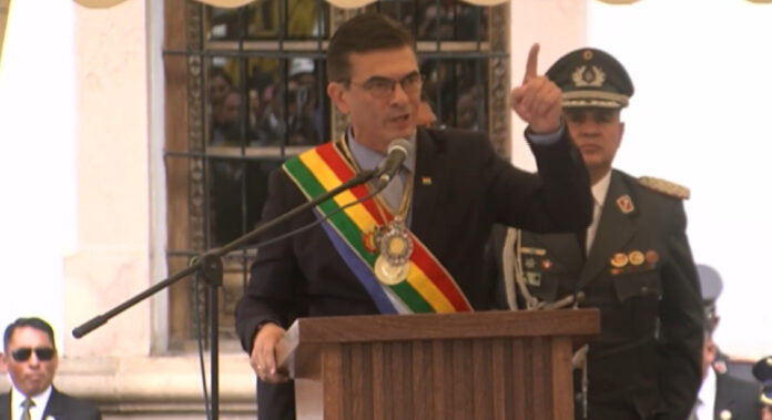 “Bolivianos, es momento de alzar la cabeza, encarar el futuro junto a nuestras Fuerzas Armadas, junto a nuestro Parlamento, instituciones, este es el momento de dar la cara para transformar el futuro de la patria. Este servidor, este humilde servidor con la fe del Estado, estará al lado de ustedes para hablar directamente esos cambios que hay que hacer. Estemos más unidos que nunca porque en la división nos derrotaron, en la unidad hemos salido triunfadores a paso de vencedores.¡Yo les prometo que vamos a salir de este momento!”, sostuvo Paz, ante autoridades nacionales y departamentales. /ABI/