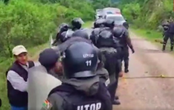 Personal de la petrolera, con ayuda de la policía, ingresó este lunes a por la zona de Chiquiaca, donde comunarios estaban bloqueando.
