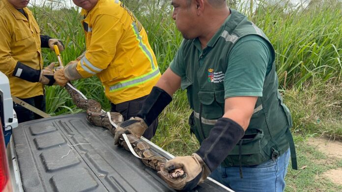 Por su parte, Marcelo López, bombero voluntario de Jenecherú, destacó el trabajo interinstitucional. “Mediante este esfuerzo coordinado, logramos poner a buen recaudo a esta boa, que ahora se encuentra en instalaciones adecuadas para su atención”, señaló.