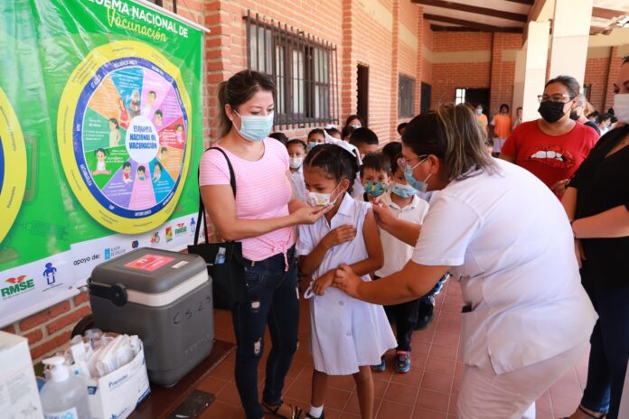 En cuanto al número de estudiantes a inmunizar, señaló que se espera llegar al 100% de los niños en edad escolar, a través de las estrategias y cronogramas de actividades de vacunación en todas las educativas actividades. Al momento, solo un 15% de la población estudiantil cuenta con la dosis contra el Covid-19, siendo un número muy bajo de inmunización, por lo que pidió a los padres de familia autorizar a través de sus firmas, el consentimiento para que sus hijos sean vacunados por las brigadas de salud.