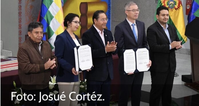 En el acto también estuvo presente el vicepresidente David Choquehuanca, autoridades nacionales y locales. Y el convenio fue suscrito por la presidenta ejecutiva de YLB, Karla Calderón, y el representante legal del consorcio chino CBC, Qinghua Zhou.