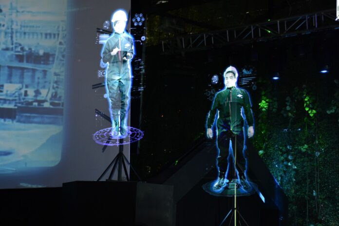“En un extremo del interior del stand, los visitantes pueden observar proyecciones de mapping en dos pantallas unidas por el mapa de Bolivia al centro. En el otro, el personaje Laserman realiza un show de láseres para presentar a científicos que, gracias a hologramas desde el futuro, cuentan la historia de cómo Bolivia logró su desarrollo y seguridad en el año 2090”, David Maldonado, gerente general de Close Up, empresa responsable del concepto y la producción del novedoso stand.